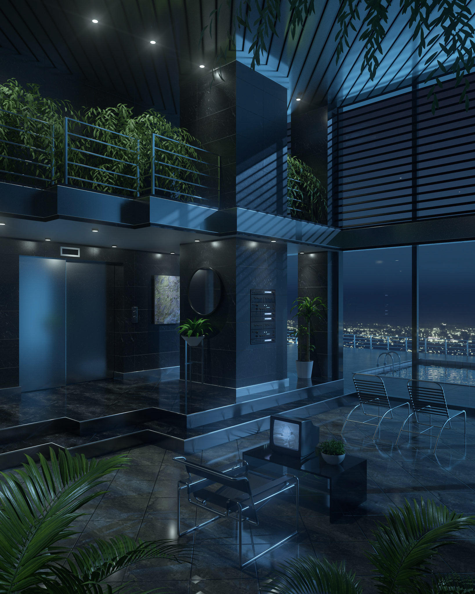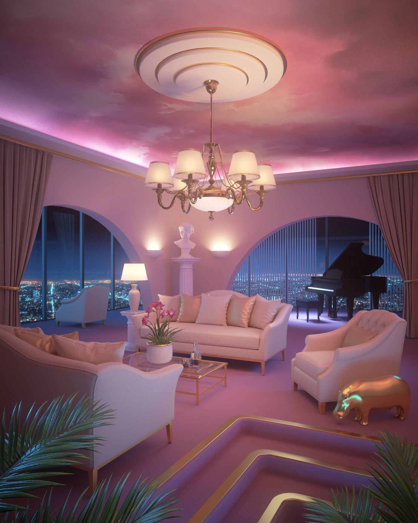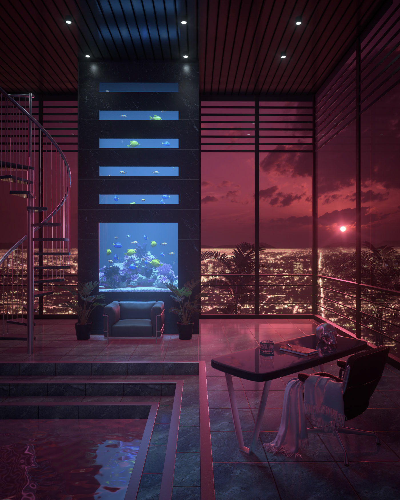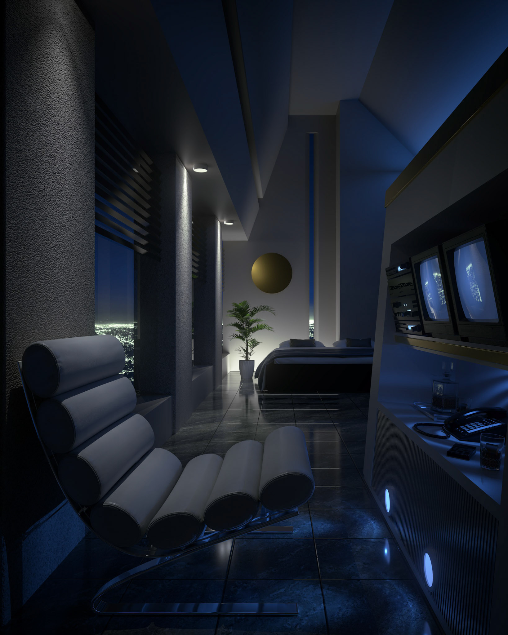 An exploration and reimagination of interior design styles from the late 80s and early 90s. A heady cocktail of chrome, leather and delusions of grandeur.